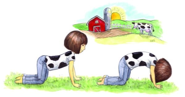 This posture stretches the spine to prepare it for other poses. Starting on all fours, arch your back and inhale through your nose. Then exhale through your nose and round your spine. Do this several times before going onto the next posture. You can even have your child say “Moo” while doing the pose.