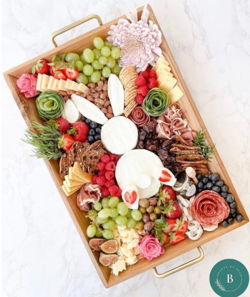 Try shaping brie with a bunny cutter or adding pastel accents helps the board feel festive without requiring complicated prep.