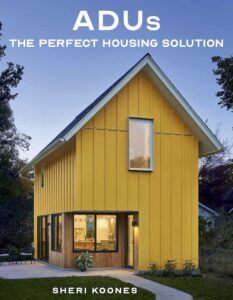 The new book ADUs: The Perfect Housing Solution by Sheri Koones beautifully profiles 25 of the most beautiful, energy-efficient ADUs in North America. This book is laid out with photos and outlines many ideas for green, energy-efficient, and space-saving features that go into building an ADU home.